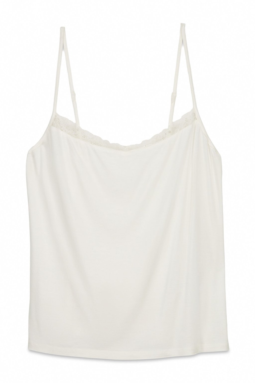 Jednofarebné jemné tielko zo zmesi viskózy a džersejového materiálu. S V výstrihom a čipkovým detailom. Také praktické a pohodlné, že ho budete chcieť mať na sebe po celý deň.
