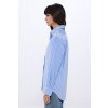 S kontrastujúcim pruhovaným vzorom a gombíkmi na manžetách.
