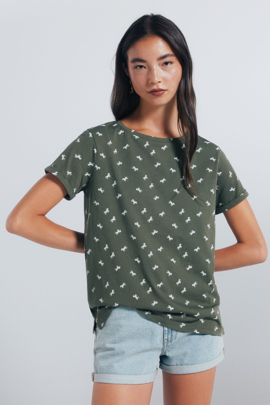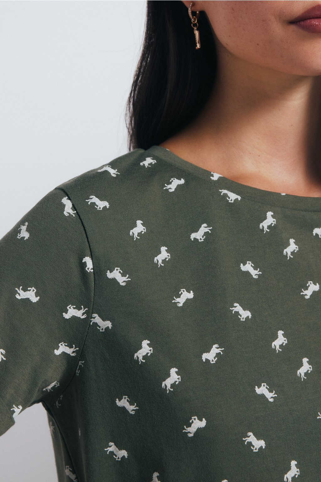 Bavlnené tričko s krátkym rukávom, okrúhlym golierom a drobným vzorom.