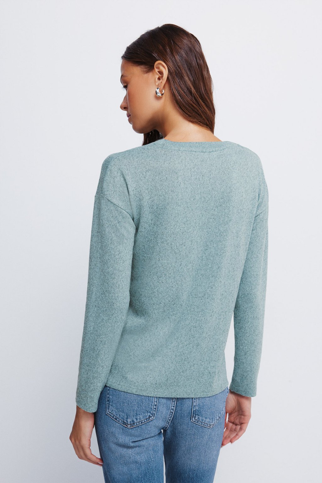 Jednofarebné tričko s dlhým rukávom z džersejového materiálu. S okrúhlym výstrihom a dekoratívnymi kamienkami na prednej strane.