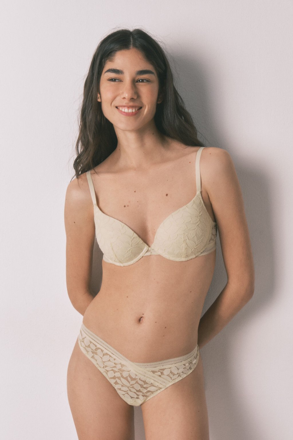 GORGEOUS béžová čipkovaná push-up podprsenka