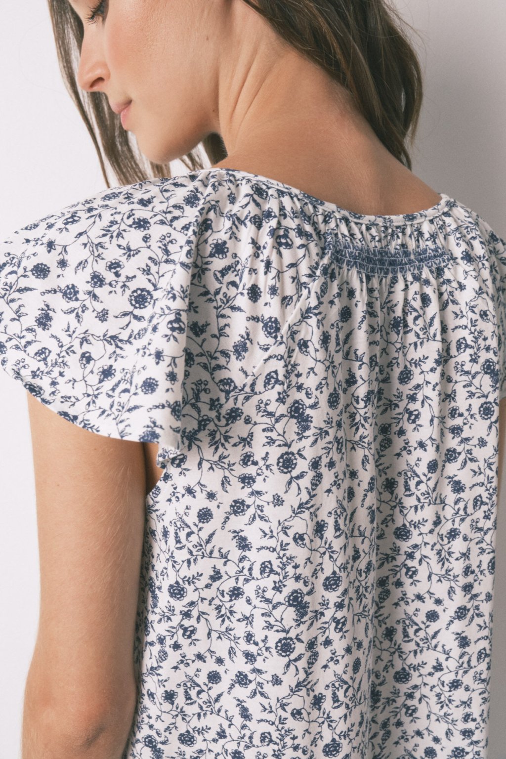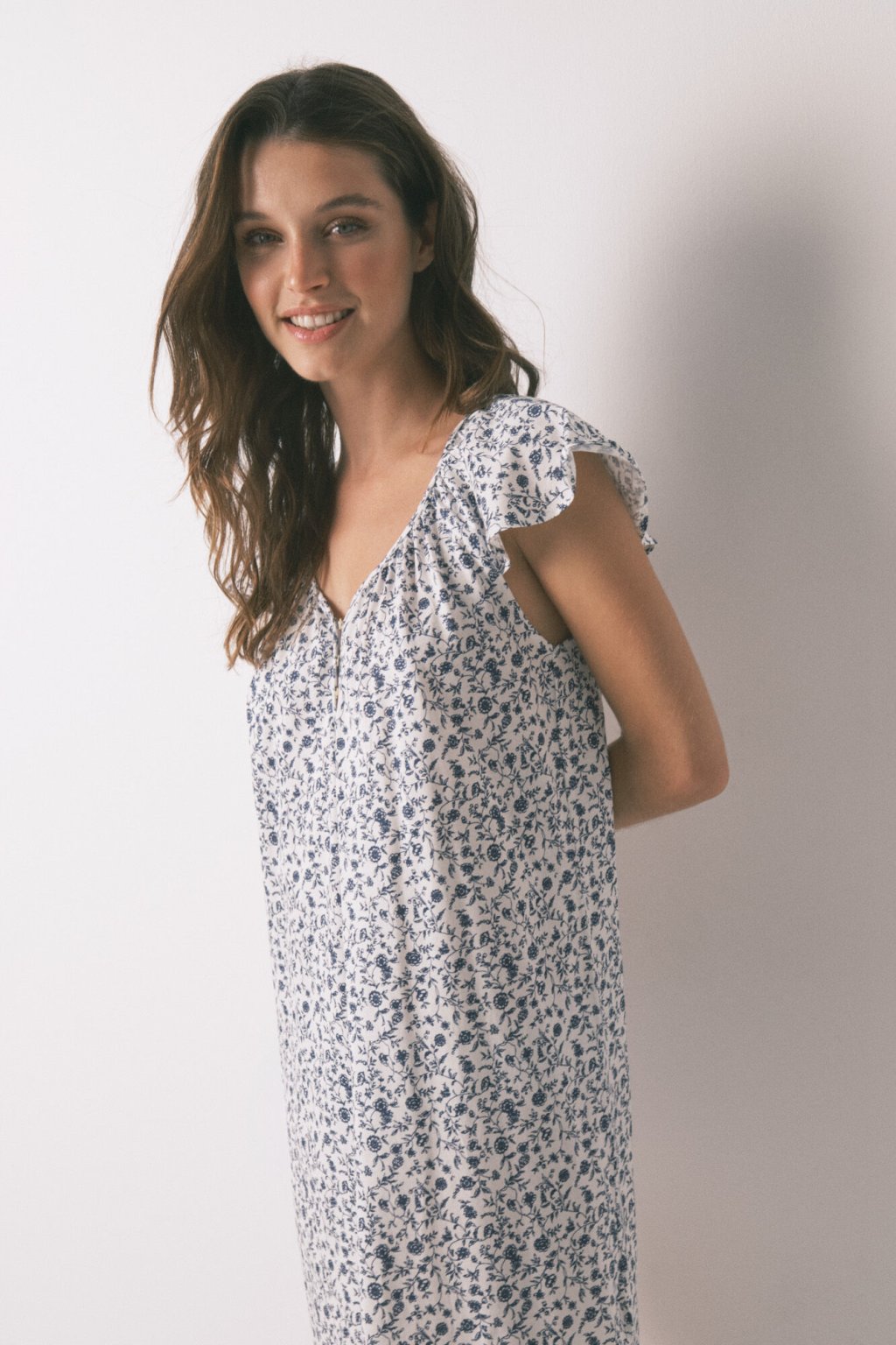 Krátka khaki nočná košeľa s kvetinovým vzorom