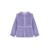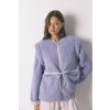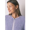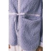 Krátky fialový župan s dlhým rukávom z nepravého ovčieho rúna. Veľmi teplý a jemný na dotyk.