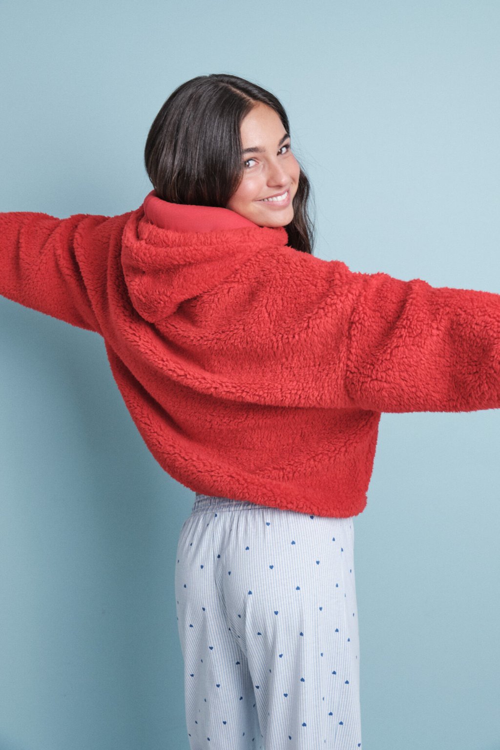 Mäkká červená mikina z nepravého rúna
