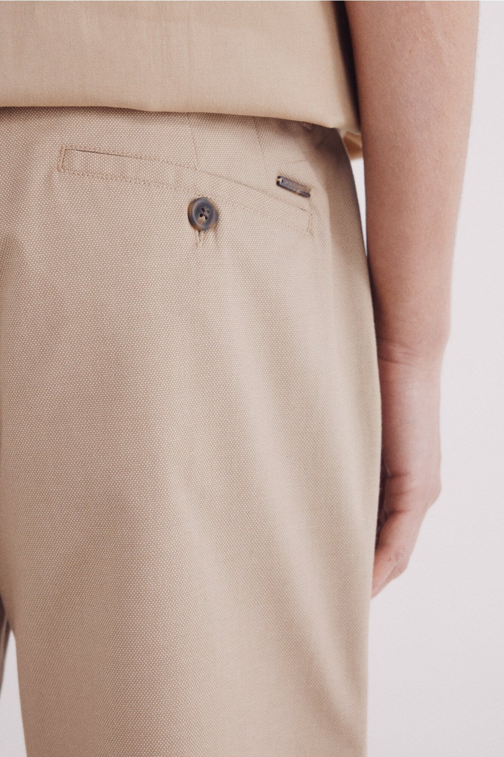Pánske Chinos nohavice z textúrovaného materiálu. S Comfort Slim Fit strihom, zapínaním na zips a vreckami na zadnej strane so zapínaním na gombík.