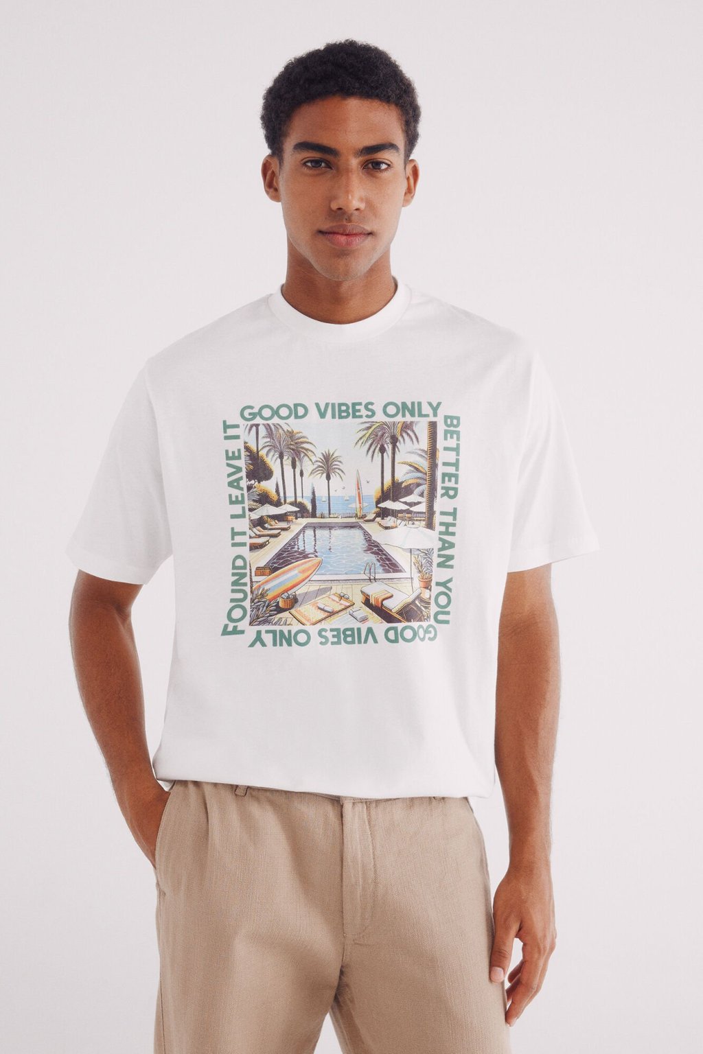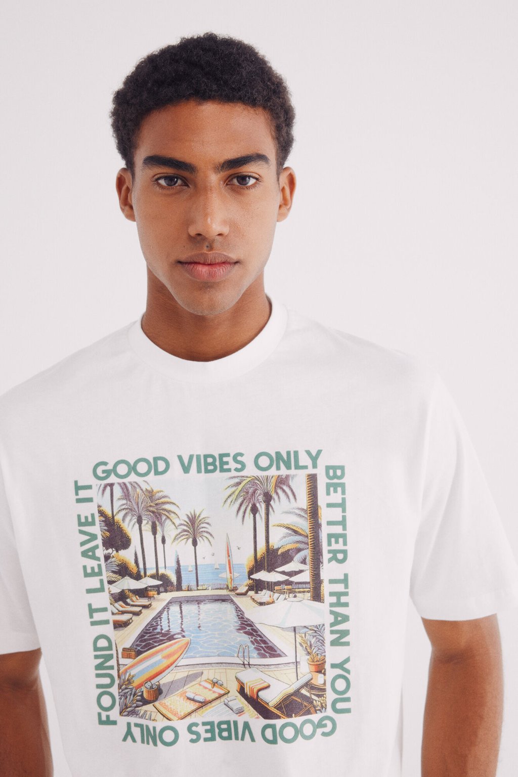 - S okrúhlym golierom z rebrovaného materiálu a grafickou potlačou na prednej a zadnej strane.