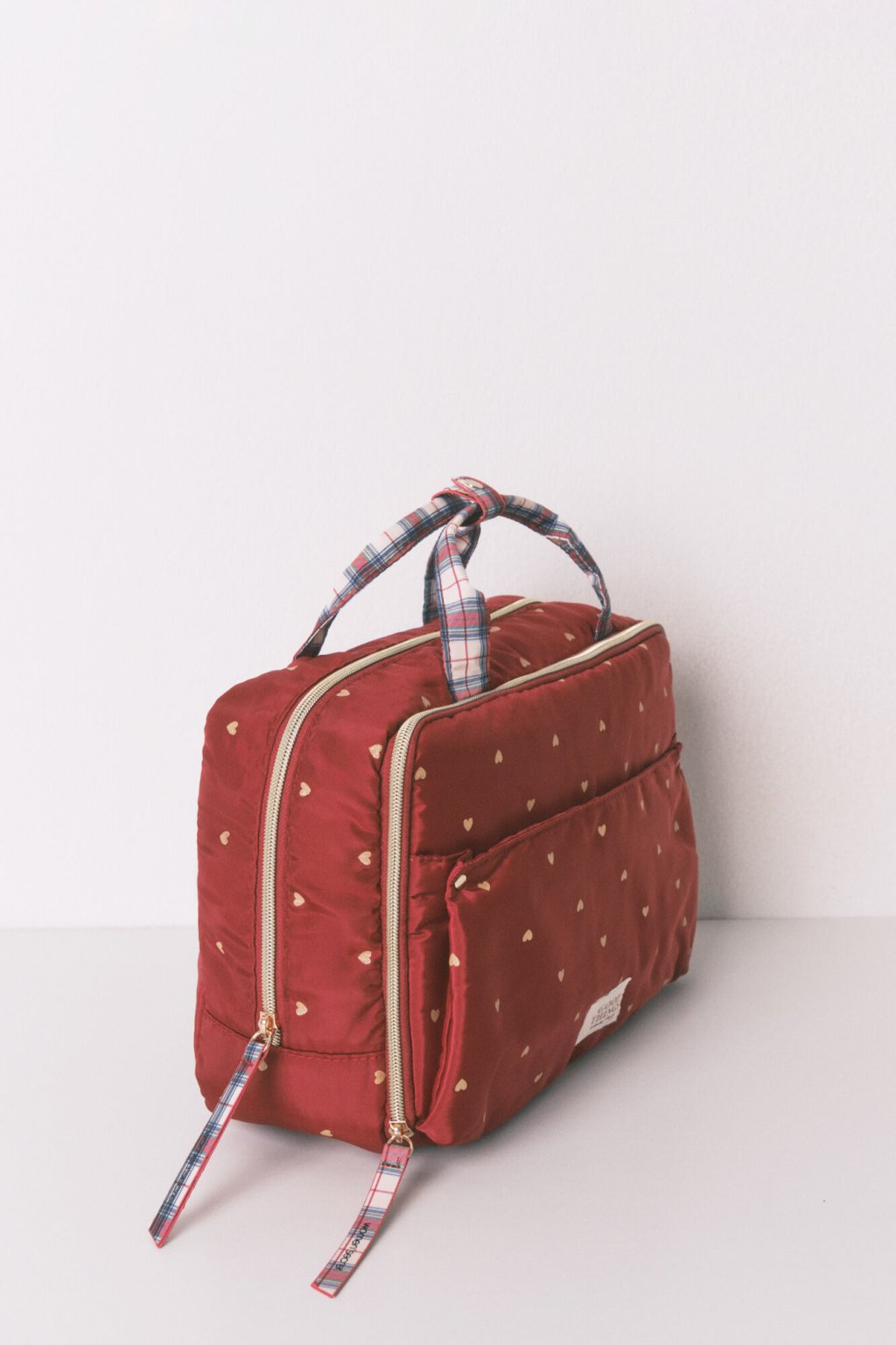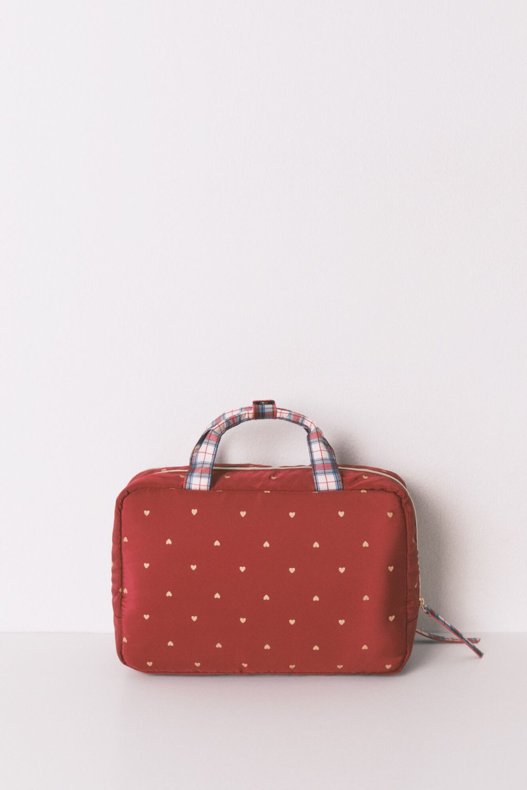 Veľká červená nylonová kozmetická taška s motívom sŕdc